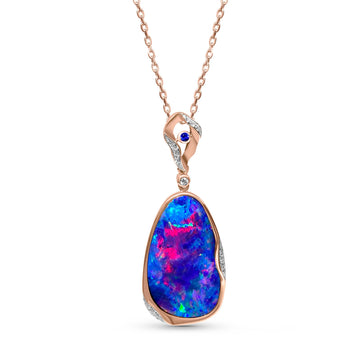 Adorn yourself with this stunning 14K Rose Gold Doublet Opal Pendant! Its delicate design, with...