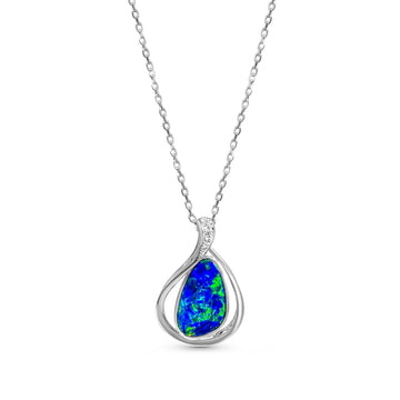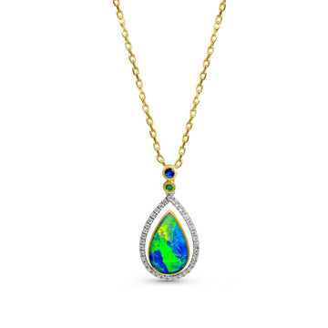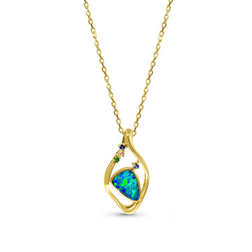 This is a stunning pendant featuring a doublet opal with a mesmerizing play of vibrant...